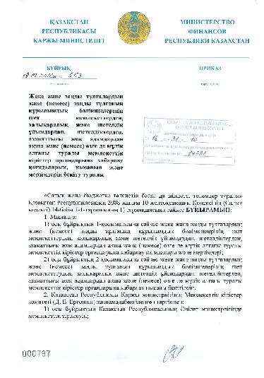 Қаржы министрлігінің бұйрықтары мәлімет үшін