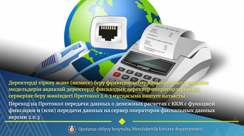 Қостанай облысы бойынша мемлекеттік кірістер департаменті БКМ қолдану тәртібіне енгізілген өзгерістерге сәйкес, Қазақстан Республикасының Қаржы министрігі Мемлекеттік кірістер Комитетімен (бұдан әрі – Комитет) деректерді тіркеу және (немесе) ФДО серверіне беру функциясы бар БКМ деректерді берудің жаңа хаттамасын, 2.0.3 нұсқасын (бұдан әрі-2.0.3 нұсқасының ХАТТАМАСЫ) әзірленгенін хабарлайды.Протокол Комитеттің ресми интернет-ресурсында 2025 жылғы 20 маусымда жарияланғанын хабарлайды.2.0.3 нұсқасының хаттамасында БКМ-ді тауарлардың Ұлттық каталогына автоматты түрде қосуға және БКМ-нің нақты орналасқан жерін анықтайтын ФДО жағында геолокацияны анықтауға арналған сервис көзделген.Осыған байланысты, 2025 жылғы 15 қазанға дейін аппараттық-бағдарламалық кешендер болып табылатын БКМ қолданатын салық төлеушілер 2.0.3 нұсқасының хаттамасына сәйкес БКМ функцияларын қайта бағдарламалауы қажет.Деректерді тіркеу және (немесе) беру функциясы бар электрондық құрылғы (темір кассалар) болып табылатын БКМ қолданатын салық төлеушілерге 2025 жылғы 15 қарашаға дейін қайта бағдарламалау жүргізу қажет.БКМ қайта бағдарламалау үшін БКМ әзірлеушілеріне және БКМ техникалық қызмет көрсету орталықтарына жүгіну қажет. Сонымен қатар, 2025 жылдың 17 қарашасынан бастап ФДО 2.0.2 нұсқасының хаттамасын өшіру жоспарланғанын хабарлаймыз.